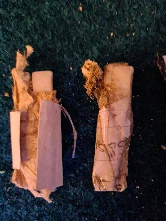 Rulo haline getirilmiş kağıtlar ve ilginç resimlerin yer aldığı parşömenler polis tarafından muhafaza altına alındı.