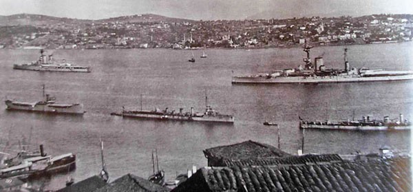 Haliç önünde işgal kuvvetlerinin gemileri.