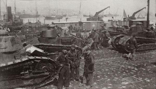 Sirkeci rıhtımına Fransız Renault FT-17 tankları indiriliyor. Mart/Nisan 1920