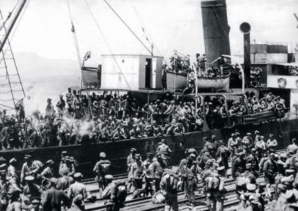Yunan işgal kuvvetleri İzmir limanından Anadolu’ya sevk edilirken. (1919)