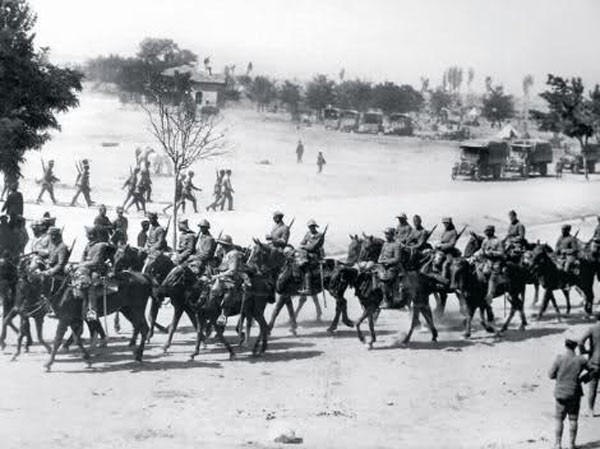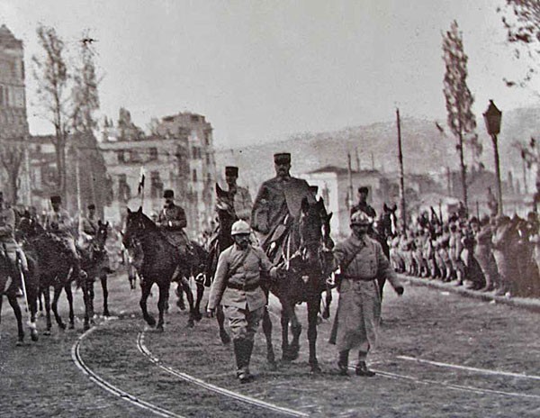 Yunan işgal kuvvetleri törenle İzmir’e çıkarken. (1919)