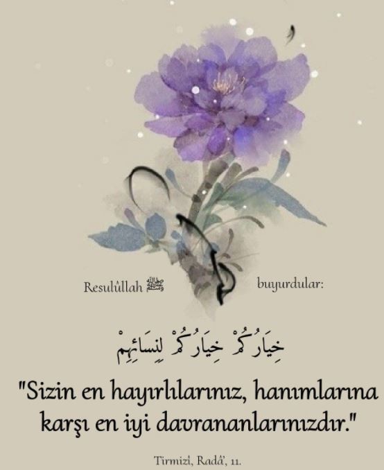 Sizin en hayırlınız, hanımlarına karşı en iyi davranandır. Hz. Muhammed (s.a.v.) [Hadis-i Şerif / Tirmizî, Radâ', 11]