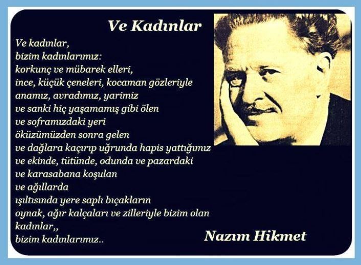 “Ve kadınlar bizim kadınlarımız: korkunç ve mübarek elleri ince, küçük çeneleri, kocaman gözleriyle anamız, avradımız, yarimiz ve sanki hiç yaşanmamış gibi ölen ve soframızdaki yeri öküzümüzden sonra gelen ve dağlara kaçırıp uğrunda hapis yattığımız ve ekinde, tütünde, odunda ve pazardaki ve kara sabana koşulan ve ağıllarda ışıltısında yere saplı bıçakların oynak, ağır kalçaları ve zilleriyle bizim olan kadınlar, bizim kadınlarımız”