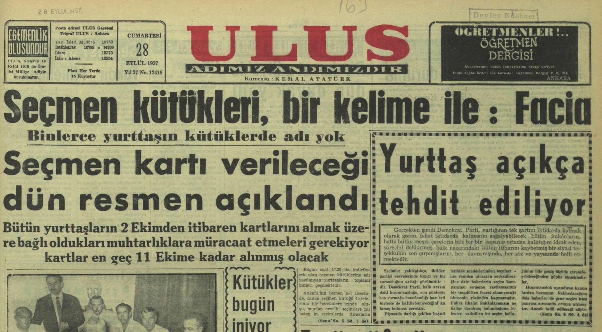 İktidardaki Demokrat Parti genel seçimi 7 ay önceye çekti. Halk, 27 Ekim 1957'de sandık başına gitti. Seçim saat 17.00'de bitecekti.