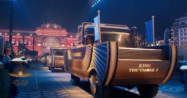 Dünya basınında yaklaşık 400 televizyonun canlı olarak yayınladığı ‘Firavunların Altın Geçidi’ adı verilen törende 18 kral ve 4 kraliçe eski Mısır geleneklerine göre dizayn edilmiş, ayrı araçlarda 5 kilometre boyunca taşındı.
