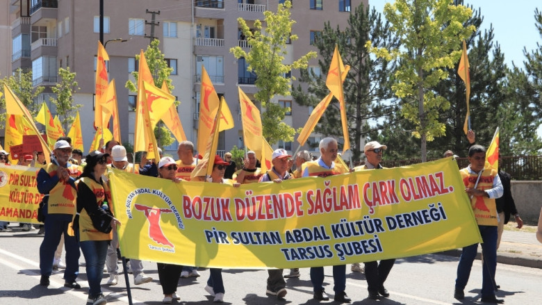 Yürüyüş boyunca “Sivas’ı unutma, unutturma”, “Şeriata, faşizme, karanlığa geçit yok”, “Devletin Alevisi olmayacağız”, “Kurtuluş yok tek başına ya hep beraber ya hiçbirimiz” gibi sloganlar atıldı.