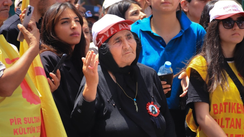 “32 yıldır bıkmadan usanmadan buraya geldik. Dedik ki: Sivas için adalet, herkes için adalet! Ama bu ülkenin yönetenleri ne katliamla yüzleşti ne de hesap verdi. Katliam zaman aşımına uğratıldı, sorumlular cezasız bırakıldı. Bu yıl ne oldu? Bu yıl da içeride kalan katiller serbest bırakıldı. Bugün o katiller aramızda dolaşıyor” dedi.