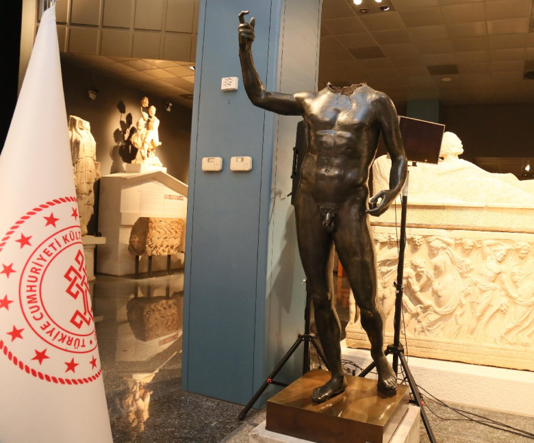 “Bunlardan Perge Antik Kenti’mizden çıkarılmış iki heykele ait başlar, bilim insanlarınca yapılan değerlendirmelere göre M.S. 3’üncü yüzyılda yontulmuştur. Söz konusu heykellerin gövdelerinin daha erken dönemlerde işlenmiş olduğu ve imparatorları tasvir ettikleri, başların ise geç antik çağda yeniden çalışıldığı anlaşılmıştır. Bu başlar uzun yıllardır yurt dışında, iki ayrı koleksiyonda bulunuyordu. Bunların kazılardan çıkan hangi gövdelere ait olabileceğine yönelik daha önce yapılan çalışmalar ışığında araştırmalarımızı sürdürüyoruz. Bu araştırmalar bu eserlerden şu an için biri hakkında net bir sonuç verdi. Antalya Arkeoloji Müzesi uzmanlarımız ile Antalya Restorasyon ve Konservasyon Laboratuvarı uzmanlarımız yaptıkları çalışmalar sayesinde ABD’den iadesi sağlanan heykel başlarından ilkini gövdesiyle birleştirdiler. Bu sayede bugün bu eseri bir bütün olarak görebiliyoruz.”